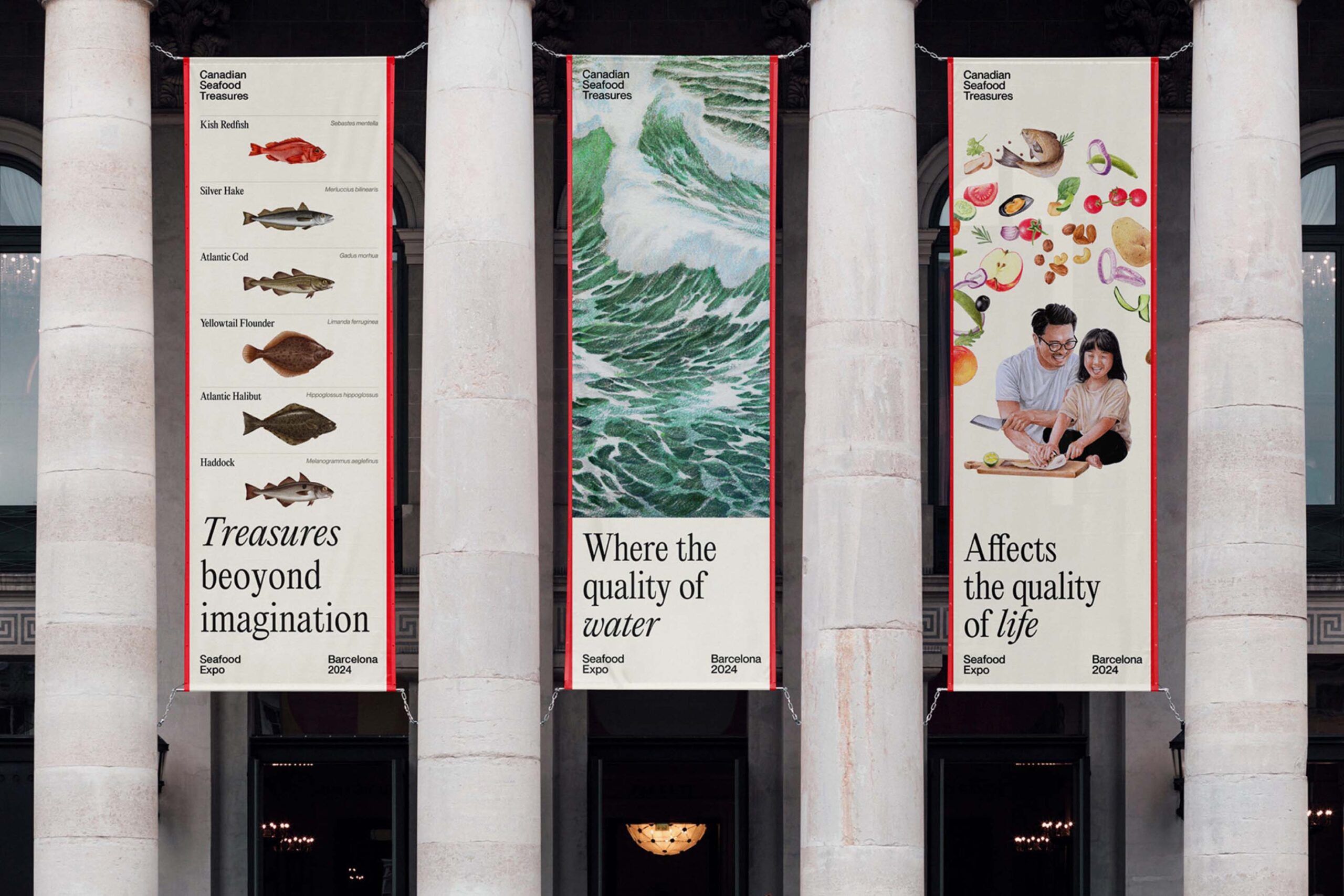 The illustrations are featured on the official website and brand communications, highlighting the diversity and morphological richness of Atlantic Canadian fish.
